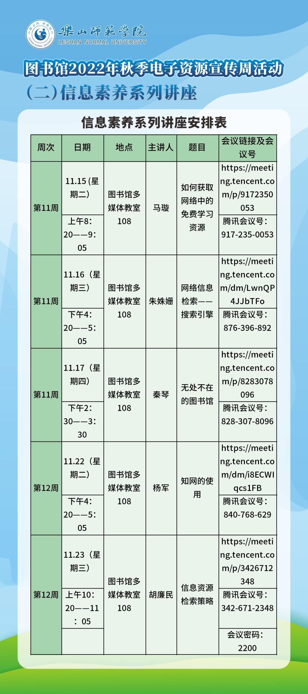 图书馆2022年秋季电子资源宣传周活动 | 信息素养系列讲座安排