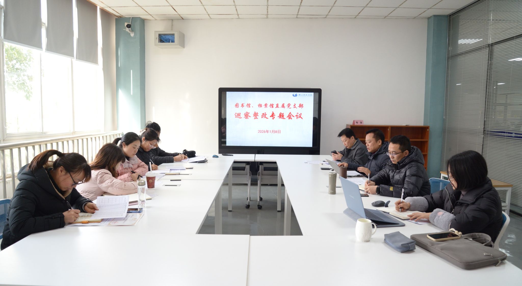 1月8日,图书馆、档案馆直属党支部在图书馆108-4室组织召开巡察整改专题会,集中讨论关于巡察反馈意见整改的“问题清单、任务清单、责任清单”(简称“三单”),旨在落实学校党委第四轮巡察第三巡察组反馈意见,直属党支部书记邹大勇主持会议,全体处科级干部、支委委员参加会议。
